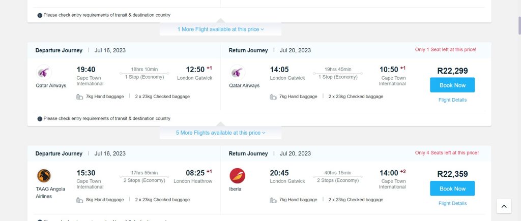 Take your time scrolling through the options and compare prices, airlines, and flight times. Travelstart provides detailed information about each flight, including layovers if any. This ensures that you have all the necessary details before making your decision.